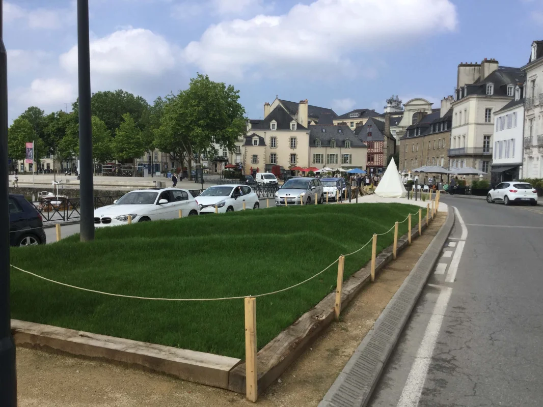 Pour cette saison des jardins éphémère nous avons essayé de faire voyager les touristes et habitants de vannes sur les plages du Morbihan, notre but étant de vous enmener à erdeven, carnac, quiberon,… Nous avons crée des vagues de gazons symbolisant la mer. L’écume de mer matérialisée par du sedum vient finir sa vie sur une belle plage de sable blanc où l’on peut voir un tipi ou des campeurs imaginaires y séjournent depuis le début de l’édition 2018.