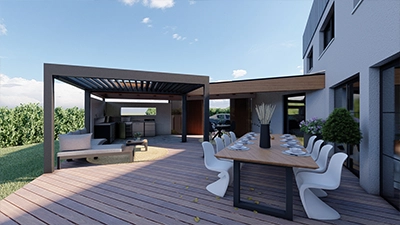 C’est souvent le cœur du projet. Avec un plan 3D, vous voyez la taille réelle de votre terrasse, comment elle s’oriente par rapport au soleil, comment une pergola va créer de l’ombre, quel matériau convient le mieux à votre style. Vous voyez aussi comment elle s’intègre avec le reste du jardin.