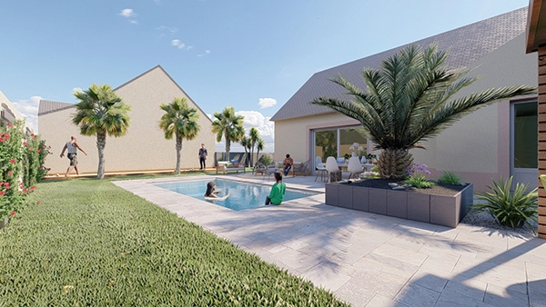 À Vannes, on a transformé un jardin plat et sans structure en créant une belle terrasse en bois avec une piscine. Le plan 3D a permis au client de voir comment cette terrasse allait devenir son véritable espace de vie extérieur, un endroit où passer du temps en famille. Le résultat ? Exactement ce qu’il avait vu en 3D.